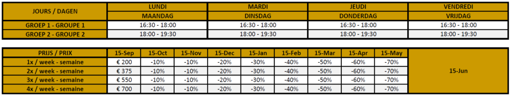 2x / SEMAINE : €375/ jaar